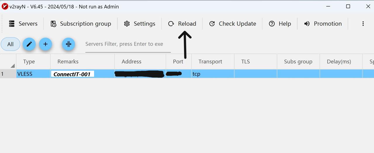 برای اتصال به سرورهای ConnectIT در سیستمعامل ویندوز، پیشنهاد ما استفاده از برنامهٔ v2rayN است.
